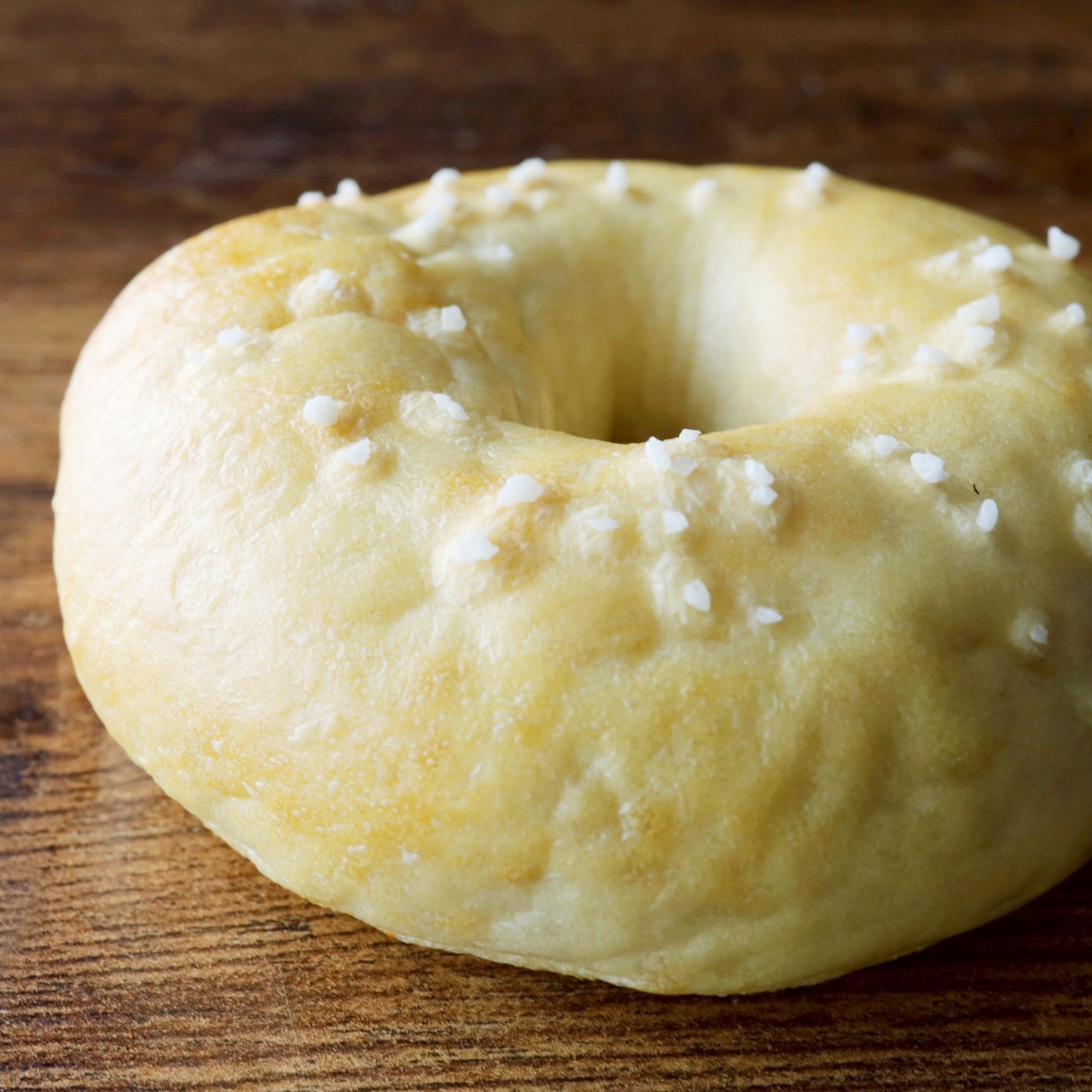 シンプルだけど、プレミアムなベーグル。国産小麦と天然酵母の生地にフランス産発酵バターを包み込み、岩塩をのせて焼き上げました。とろけたバターが生地になじみ、噛むほどに奥深い旨みが広がります。
